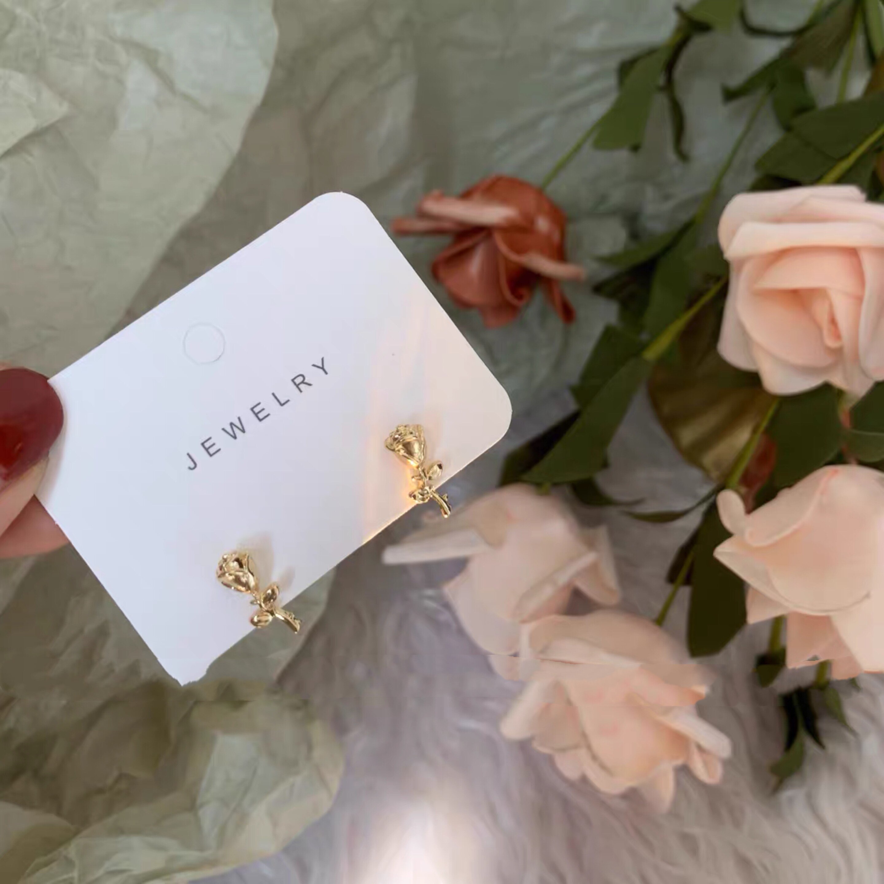 Exquisite~S925 Silver Needle Simple and Small Rose Stud Earrings Gentle and High-end Temperament Small Fragrance Earrings