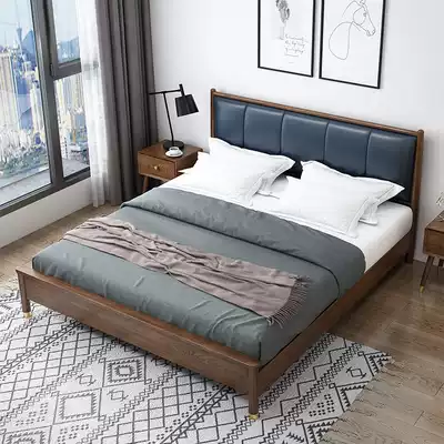 Heineken beauty solid wood bed 1 8-meter double bed South American walnut home master bedroom light luxury 1 5-meter bed Modern simplicity
