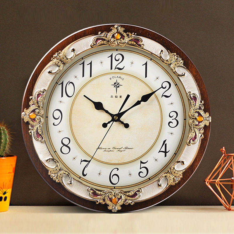 North Star mute solid wood hanging bell 16 inches Chinese printed traditional quartz clock living room beautiful trend watches