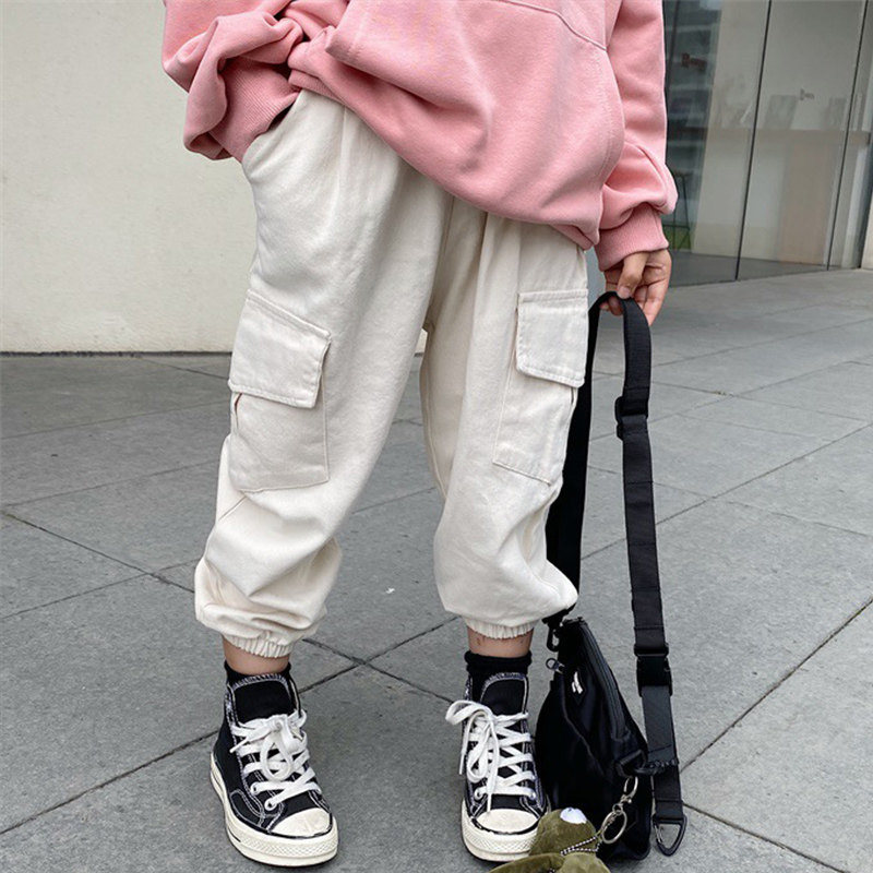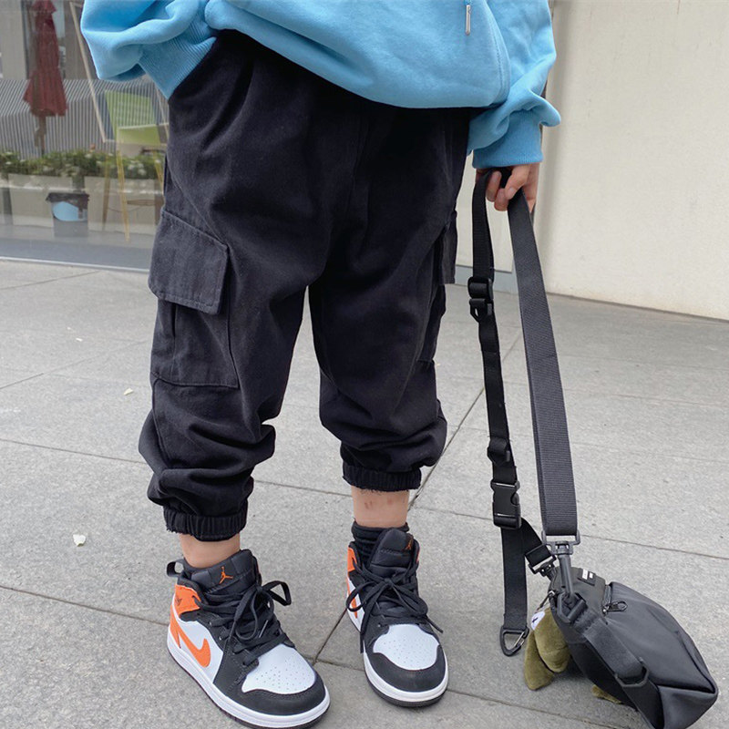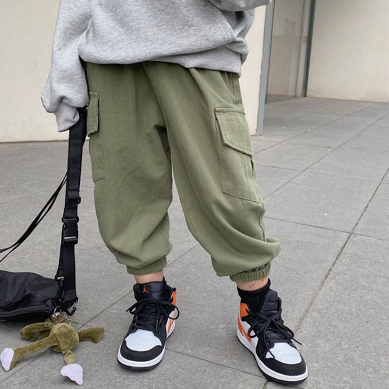 Children's net red pants, foreign style, beamed overalls, girl's autumn loose trousers, boy's Korean version of hip-hop pants, handsome