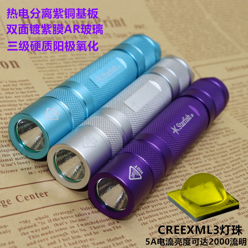 Starfish Flashlight S5 XML2 Metal Switch Outdoor Riding Long Shot Mini 18650 Small Straight Led Super Bright