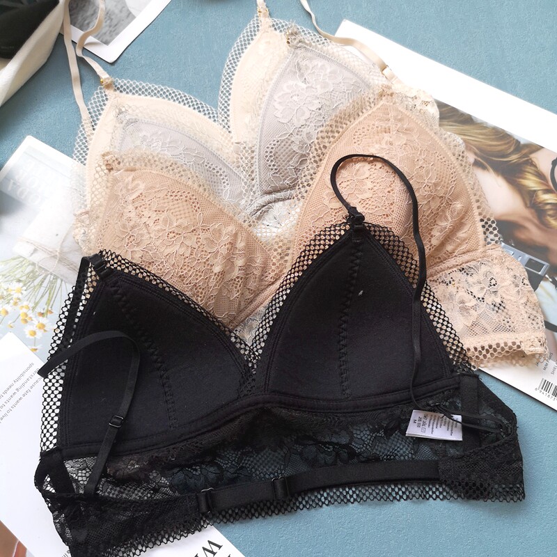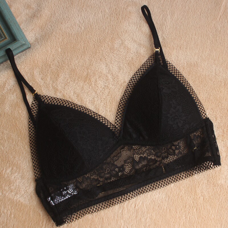 Small Finn ultra-thin bra without steel ring lace U type dew back thin bra sexy European and American triangular cup lingerie summer