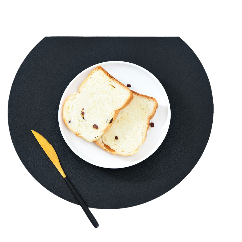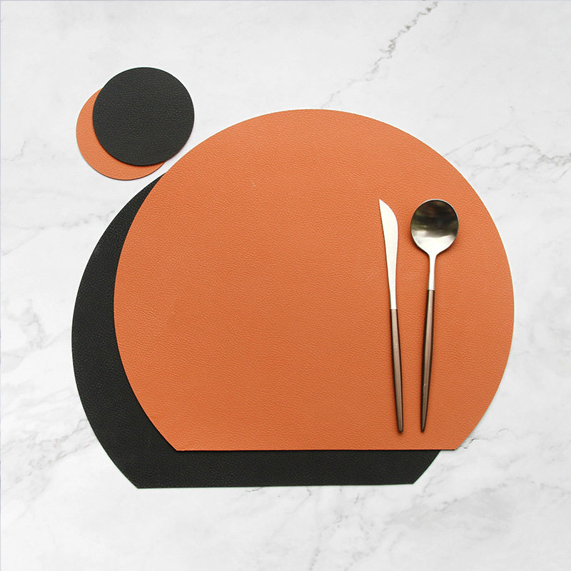 Black + brown (semi-circle placemat round coaster) powder + dark gray (semi-circle placemat and round coaster) blue + gray (semi-circle placemat and round coaster) dark green + beige (semi-circle placemat + round coaster) coffee