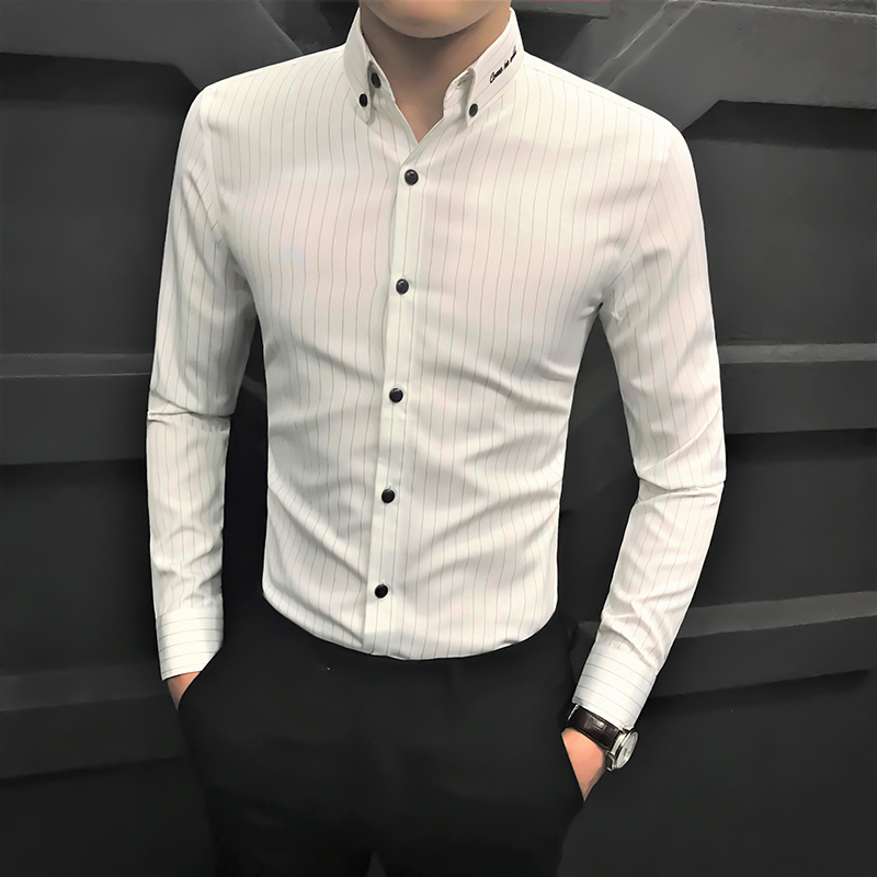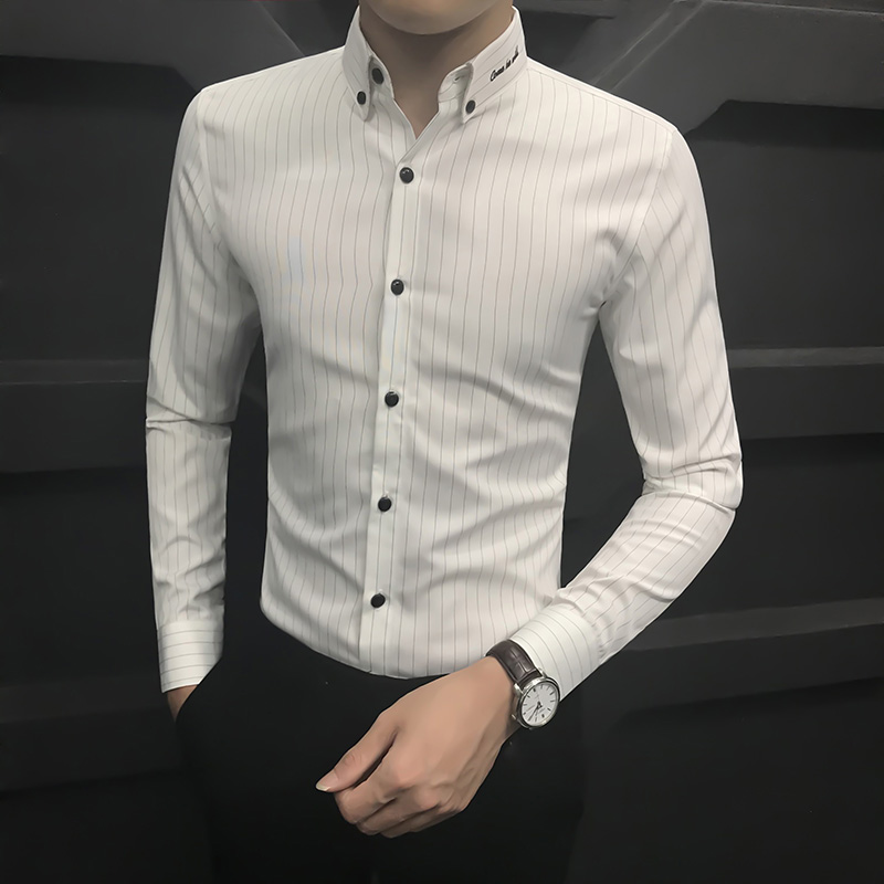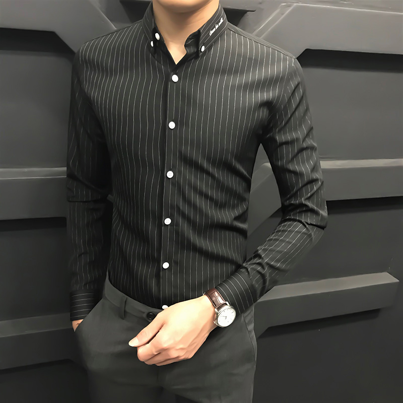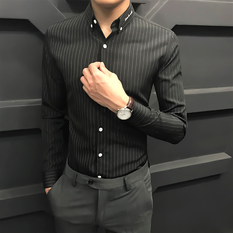 Rich bird striped shirt men spring and autumn sleeve handsome leisure high-end business black shirt men