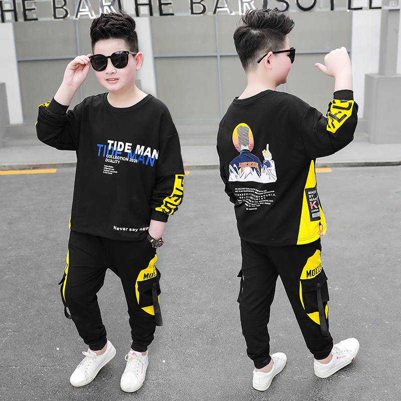 Fat children's clothing boys plus fat increase 2022 spring and autumn loose sweater middle and large children's big size suit two-piece set 15 tide