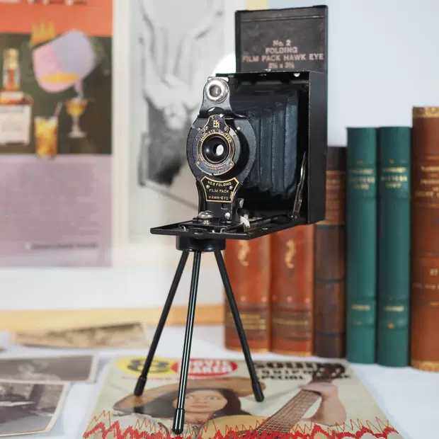 Western antique old objects Kodak Kodak square box folding leather chamber organ camera model room homestay decoration