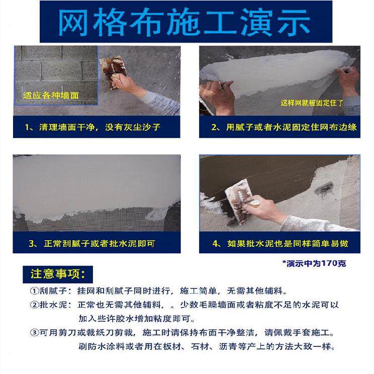 Exterior Wall Mesh Cloth Anti Cracking Refurbishment Flat Tight Solid Powder Wall Underlying Anti-Cracking Powder Wall front with large volume Self-adhesive fine mesh