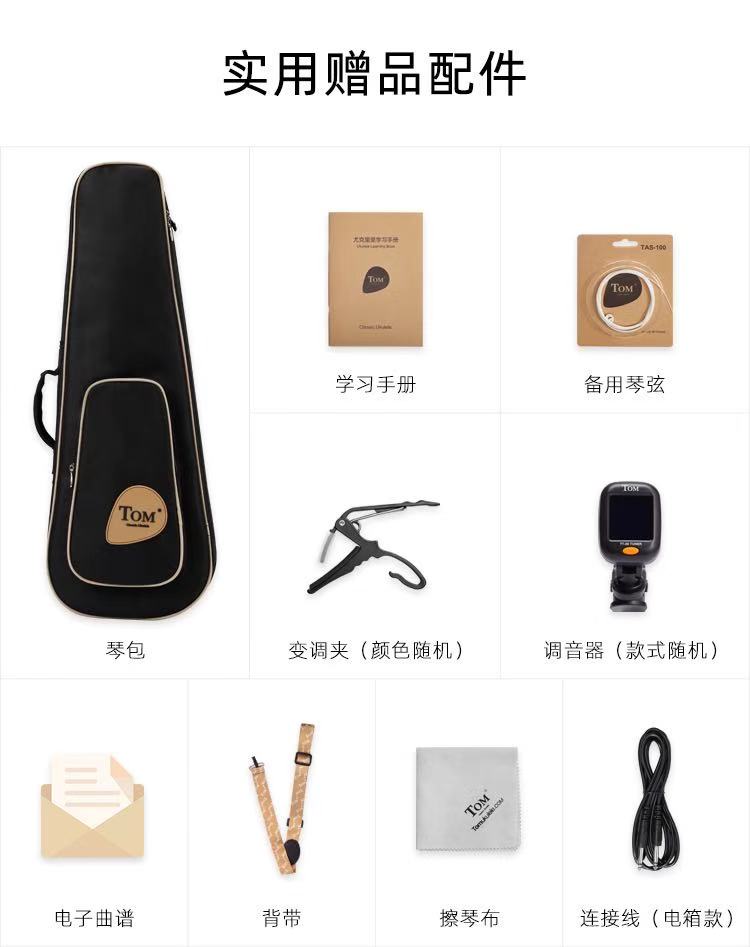 TOM Ukulele TUC200 veneer titanium string beginner 21 small guitar children adult 23ukulele26 inch