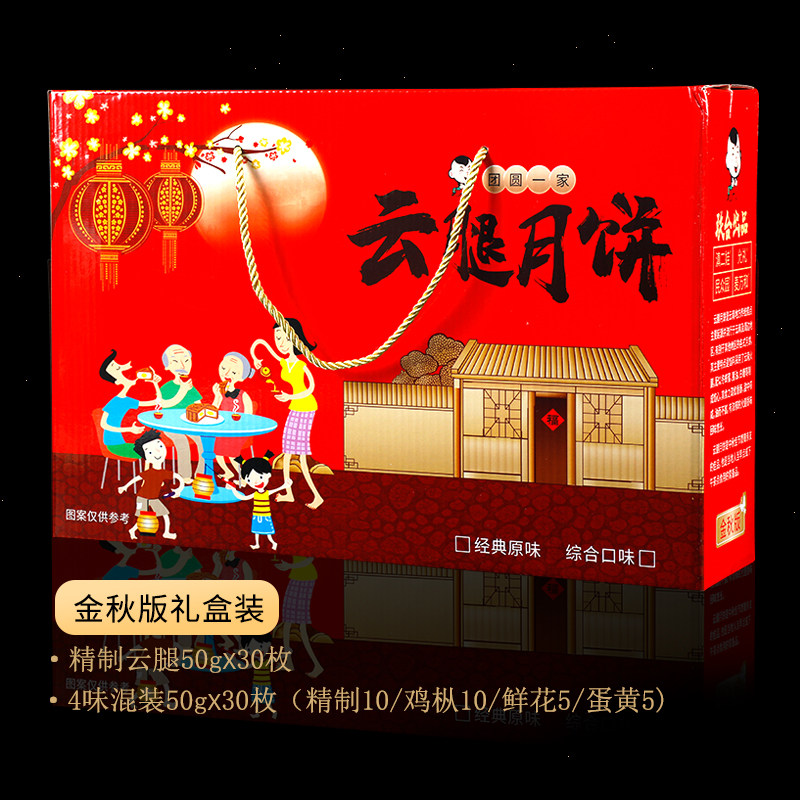 Paper wrapped ham 100g*10pcs (traditional mooncakes)Treasurer recommended Paper wrapped ham 100g*5pcs (traditional mooncake) Cloud leg mooncake 50g*10pcs (bag) Rose cloud leg 50g*10pcs (bagged) Egg yolk cloud leg 50g*10pcs (bag) Four-flavor mixed 50g*10pcs (bagged) Delicate cloud leg 100g*10pcs (bag) Egg yolk cloud leg 100g*10pcs (bag) Four-flavor mixed 100g*10pcs (bag) Cloud leg mooncake 50g*10pcs (Ruyi gift box) Four Flavor Mixed 50g*10 pieces (Ruyi Gift Box) Cloud Leg Mooncake 50g*20 pieces (Dian Li Song Gift Box) Four Flavor Mixed 50g*20 Pieces (Dian Li Song Gift Box) Cloud Leg Moon Cake 50g*30 Pieces (Golden Autumn Edition Gift Box) Four Flavor Mixed 50g*30 Pieces (Golden Autumn Edition Gift Box) Exquisite Cloud Leg 100g*20 Pieces (Bag) Golden Dragon Bright Moon Gift Box Four Flavors Mixed 100g*20 Pieces (Bag) Golden Dragon Bright Moon Gift Box