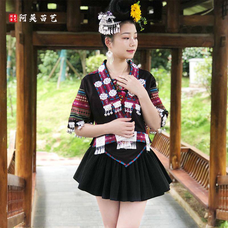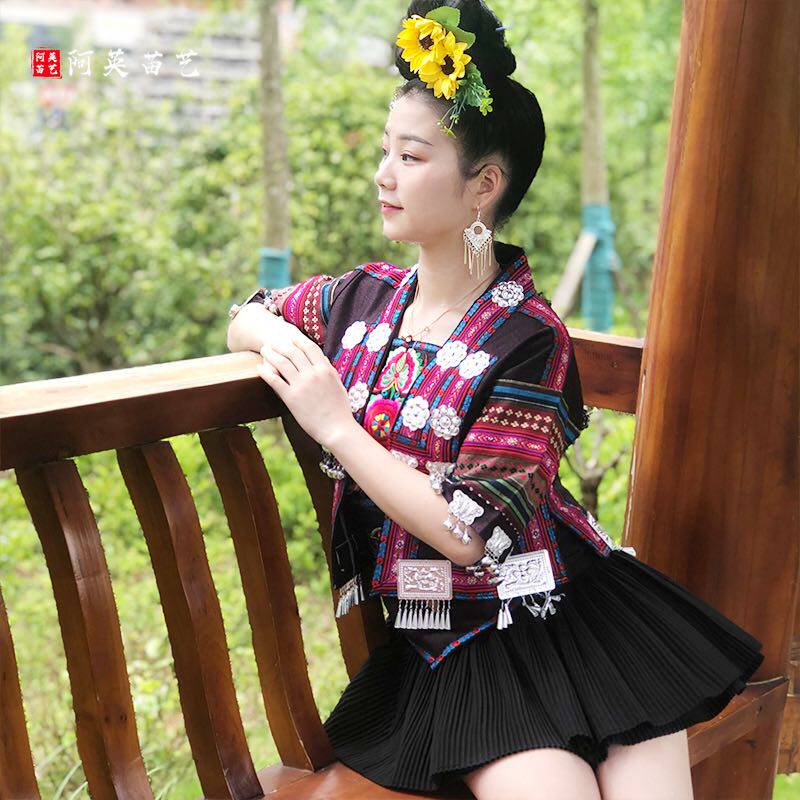 Ethnic Wind Clothing Female Miao Embroidery Clothing Art Photos Blouses Scenic Area Travellers filming Costume Performance Stage Dress