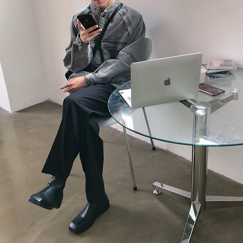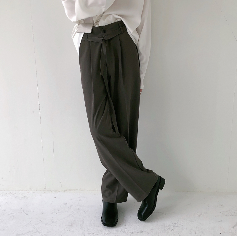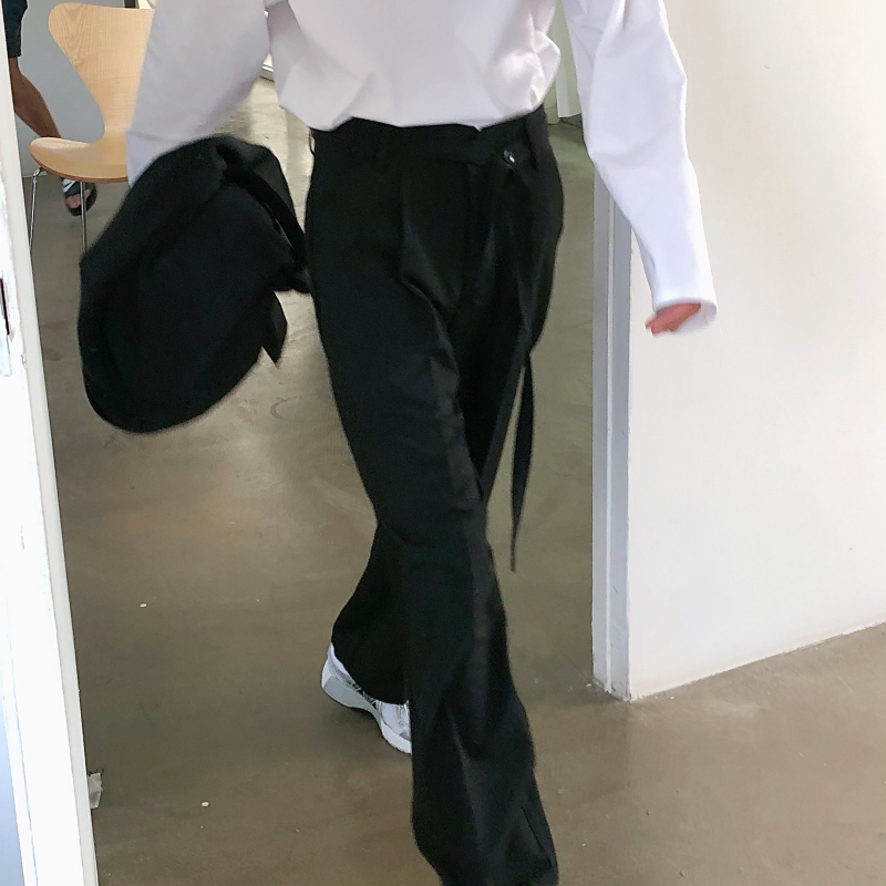 yghome rope decorated casual sauce pants men with trend hay straight bar wide broad leg pants dragged pants