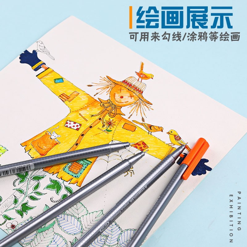 Germany STAEDTLER STAEDTLER hook pen 0 3mm color needle pen fiber pen Waterproof hook pen sketch pen drawing pen Hand-drawn gel pen learning special black drawing design