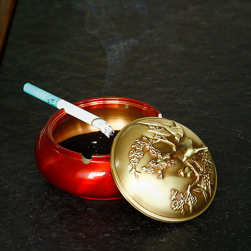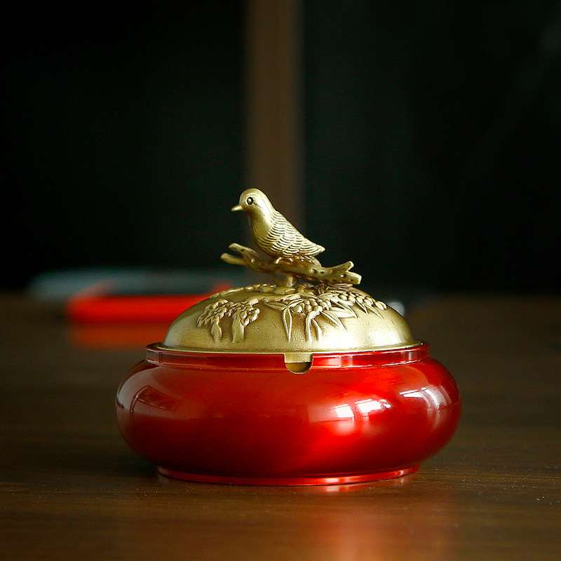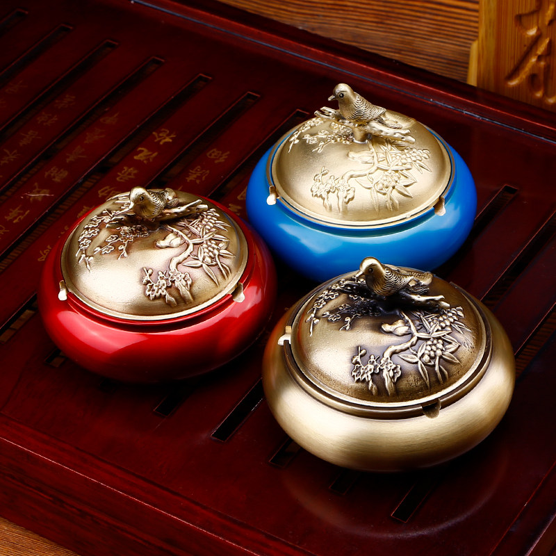 Pure copper ashtray Creative personality trend smoke cylinder New Chinese household living room coffee table Office decoration decoration