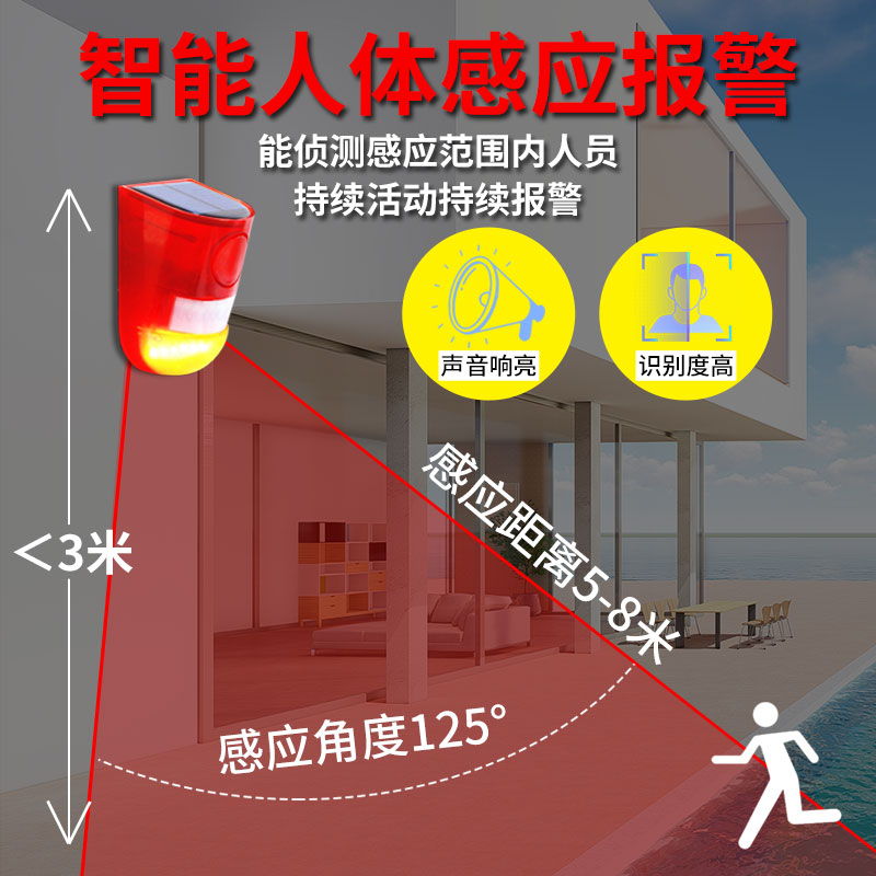 Solar charging warning light infrared human sensing intelligent alarm sound and light alarm flash burglar-proof anti-thief