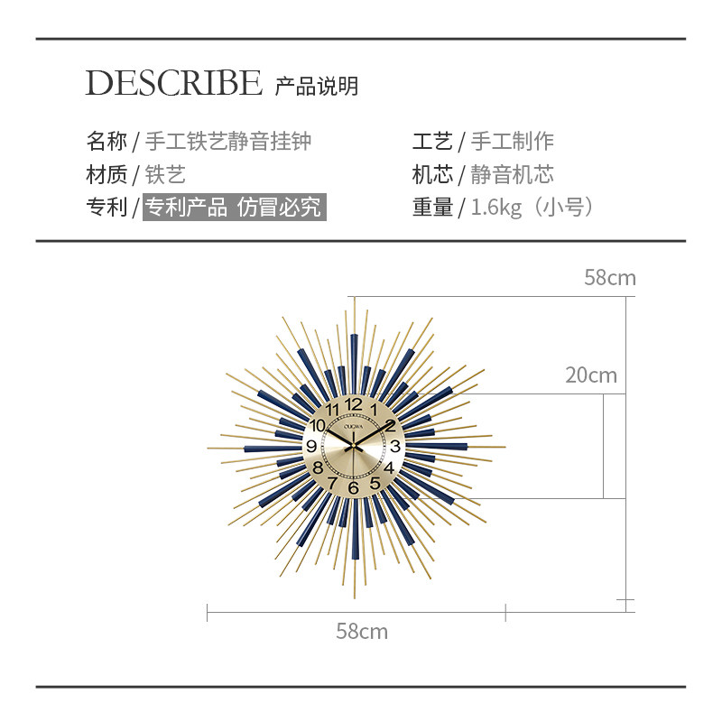 Creative clock wall wall clock living room home fashion Nordic light luxury net red clock wall decoration atmospheric wall watch