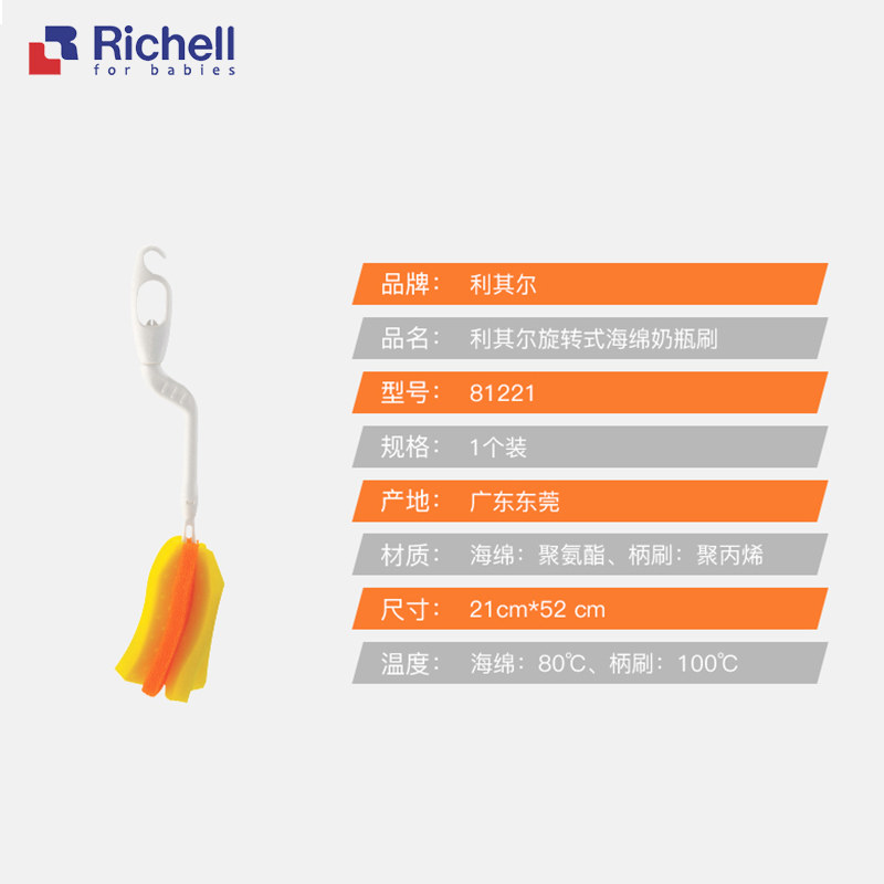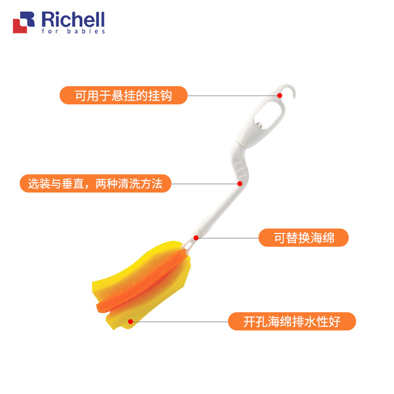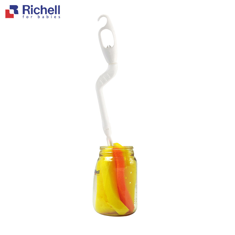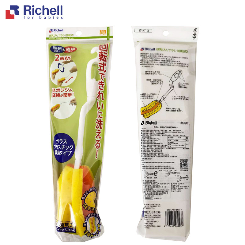Richell Rotating Bottle Brush Straw Brush Baby Bottle Cleaning Tool Sponge Brush Straw Brush