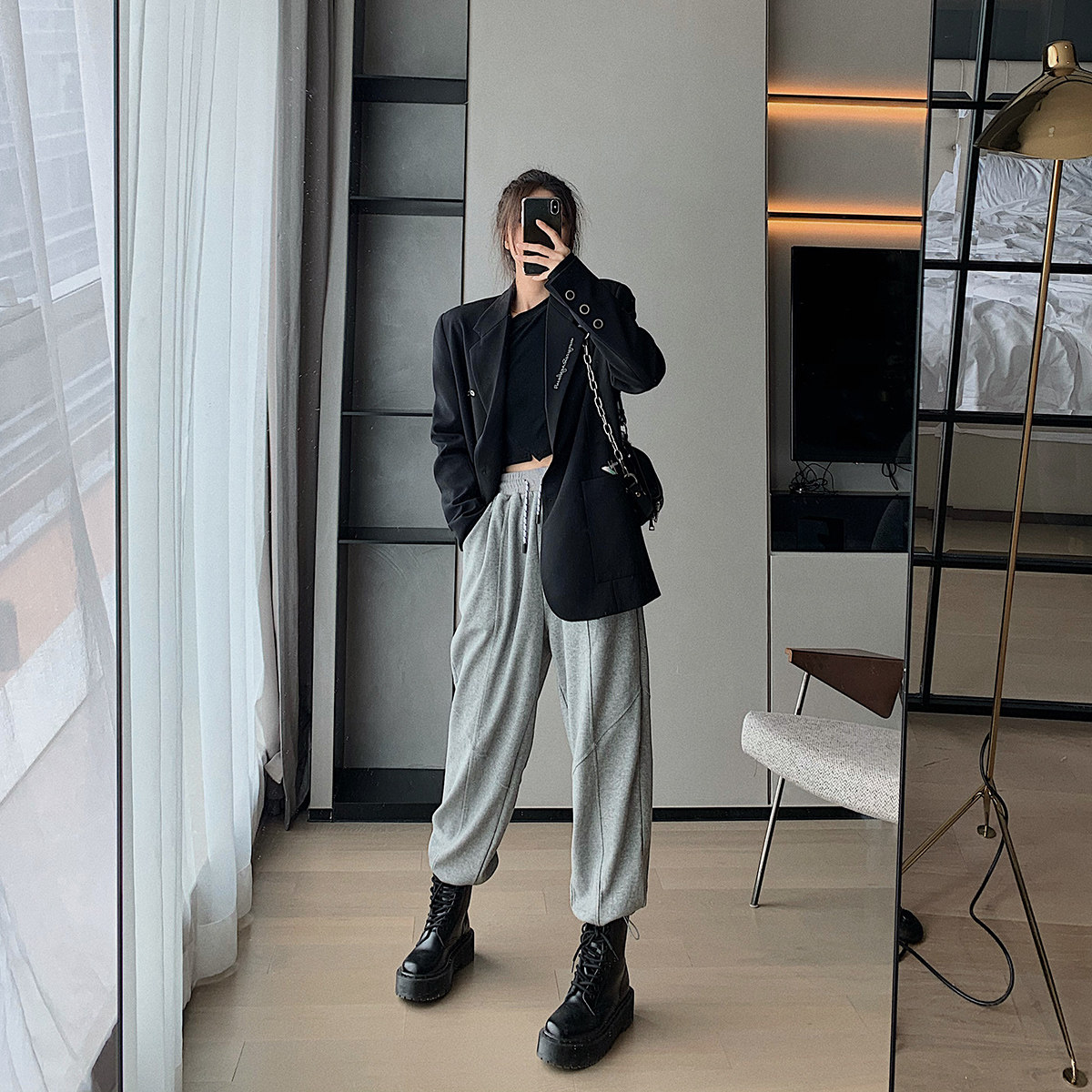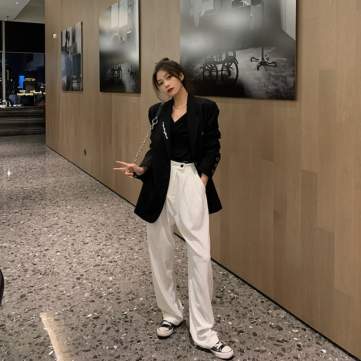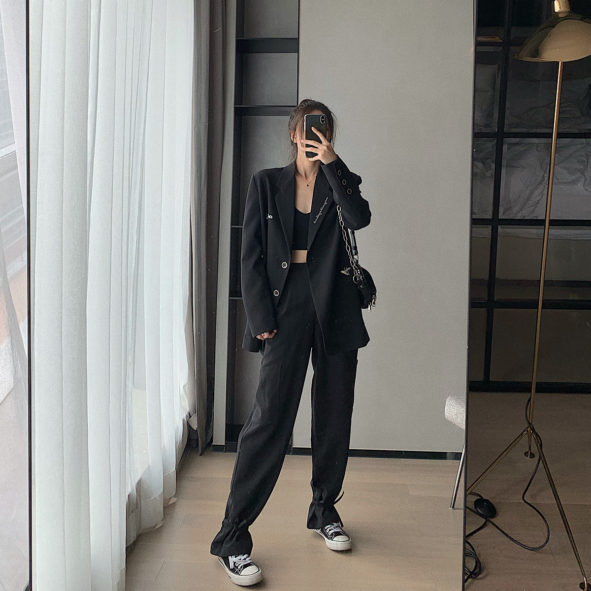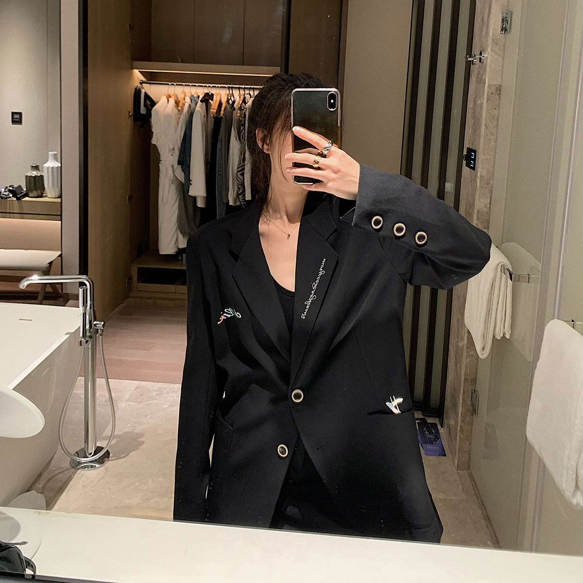 Crystal lord black suit jacket female Korean version Inn Leng Wind relaxation 2021 Spring and autumn letter design feeling small crowdsuit