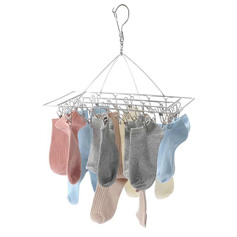 Ourunzhe stainless steel hosiery clip hanger 30 clips multifunctional drying baby socks hanger underwear hanger