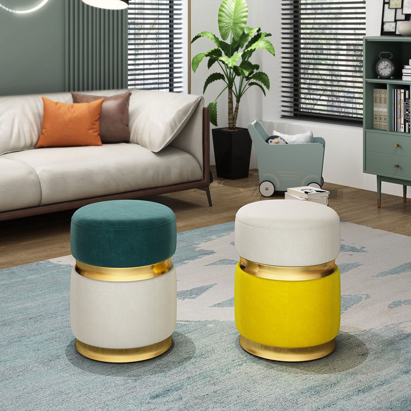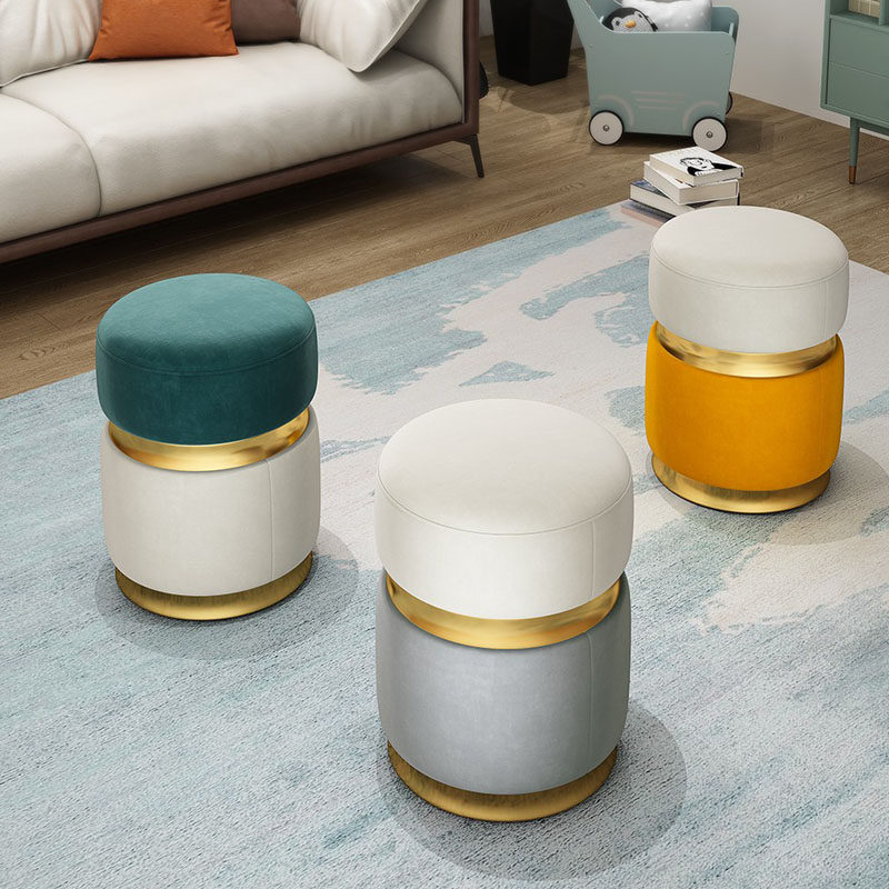 Light Luxury Dressing Stool Home Round Stool Living Room Sofa Stool Simple Fashion Double Waist Design Flannel Stool Adult Makeup Stool