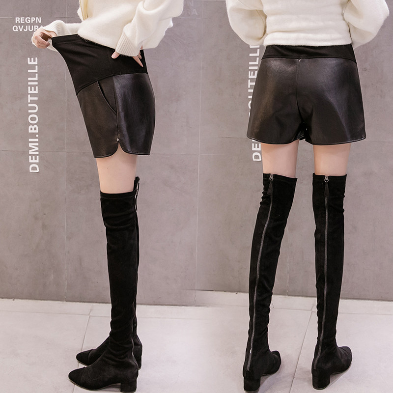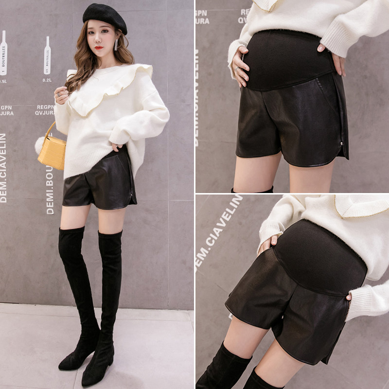 Pregnant women's shorts, autumn clothes, fashionable and versatile PU leather pants, wide-leg pants, autumn and winter boots, high-end pants, autumn