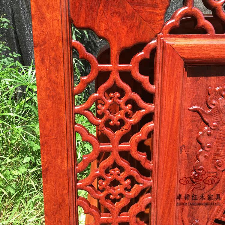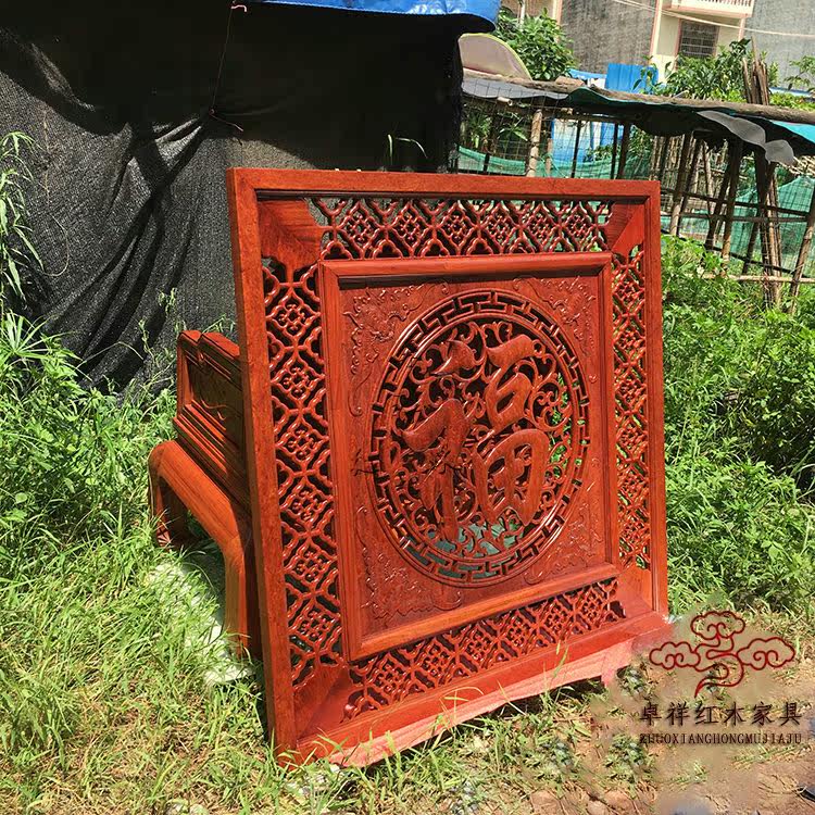 Myanmar flower wood old materials plaque Large fruit purple red wood hanging screen hollow carved unique thickening
