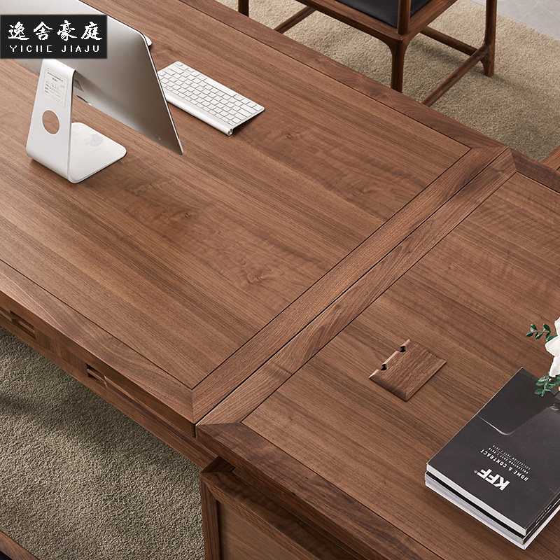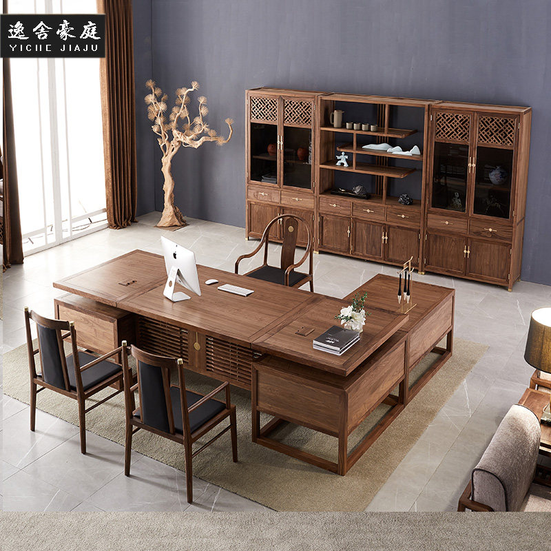 New Chinese style solid wood desk simple modern boss desk executive desk simple atmospheric Zen office furniture customization
