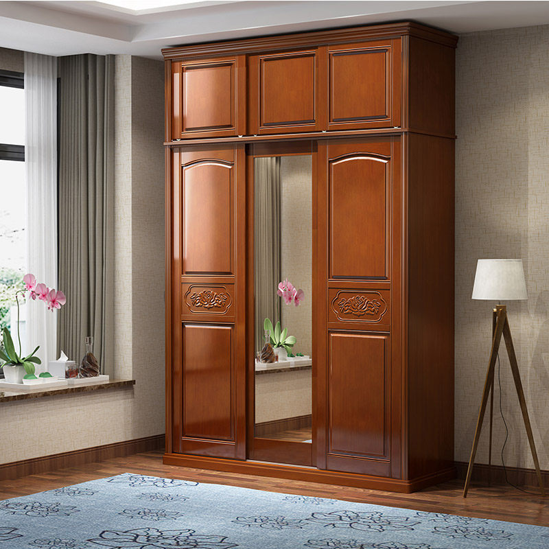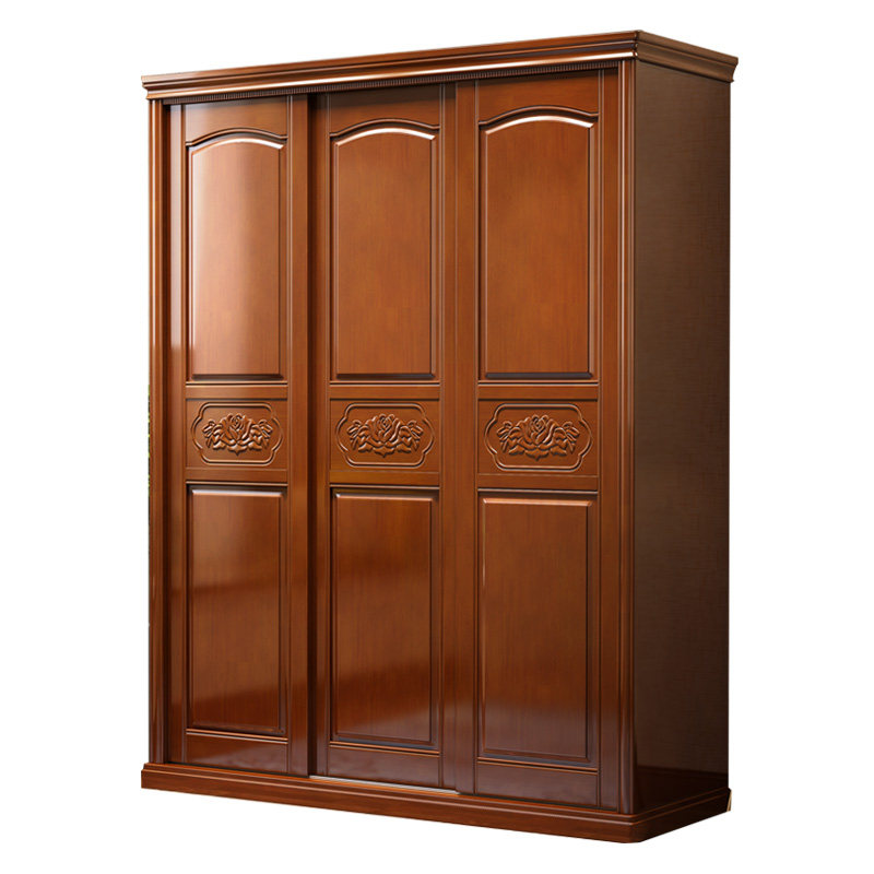 Modern minimalist solid wood sliding door wardrobe two doors three doors economical overall log sliding door home storage wardrobe