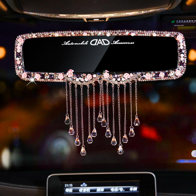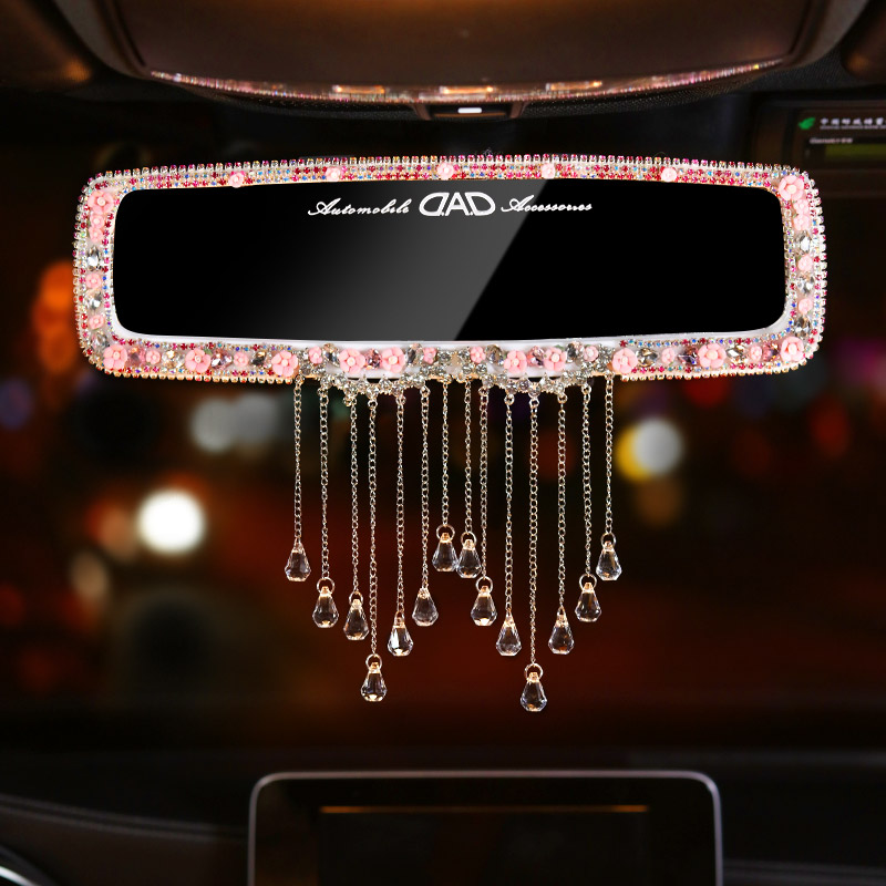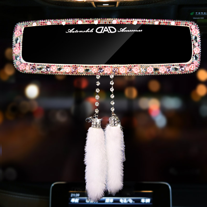 Luxurious rearview mirror pink crystal diamond flower crystal cord Luxurious Rearview Mirror Purple crystal Flower Crystal Curtain Lavish Rearview Mirror Silver crystal Flower Luxurious Rearview Mirror Pink Crystal Diamond with luxurious