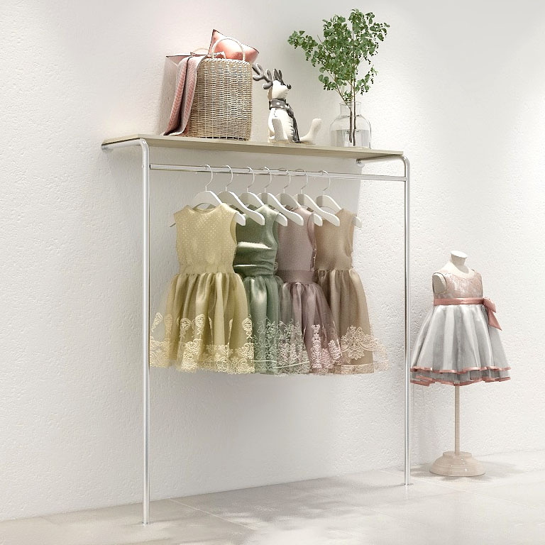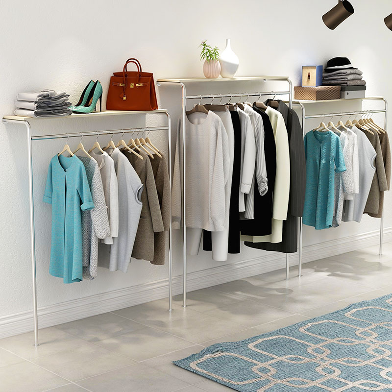 Clothing Shop Upper Wall leaning against wall Island Side Hanging rack Hanger Mesh Red Women's Clothing Shop Stainless Steel Shelving Columns