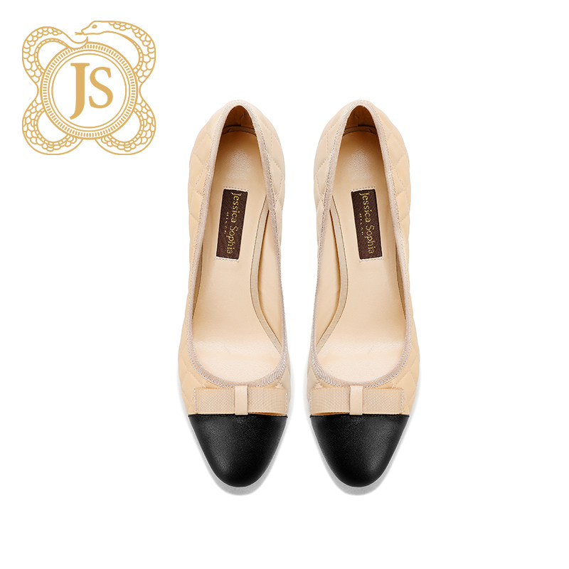 Small fragrant wind coarse heel single shoe woman plaid retro nude color temperament elegant name Ehime High heels 2020 new