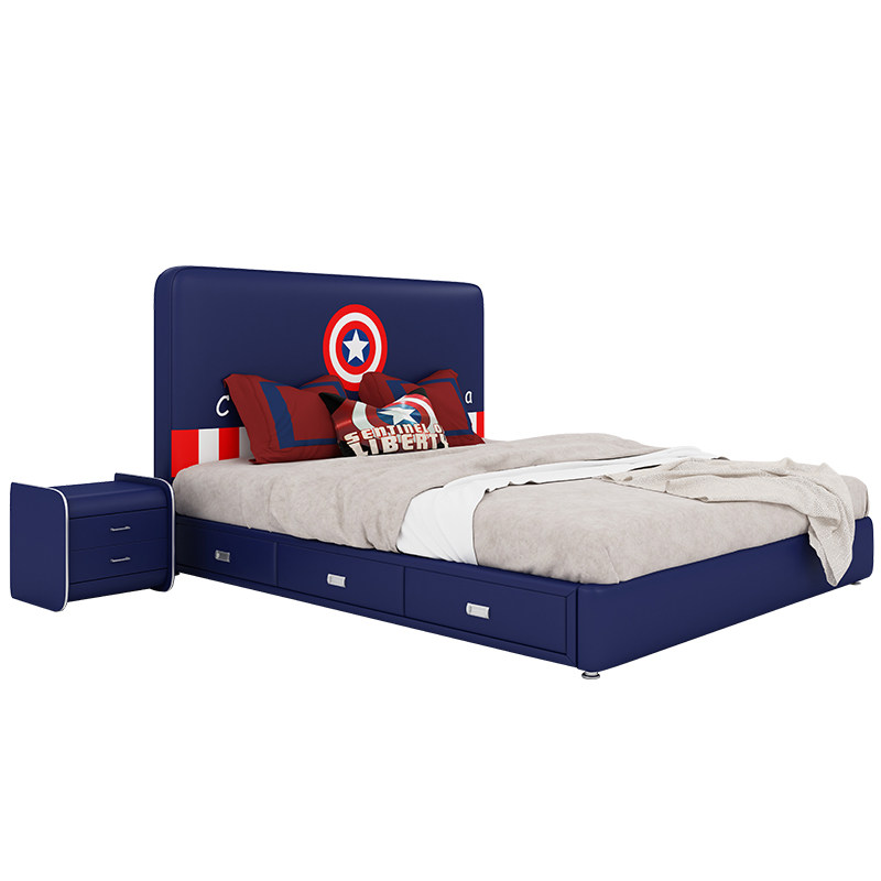 Modern minimalist children's bed boy bed net red single bed 1 2 meters 1 5 meters small apartment leather bed Captain America bed
