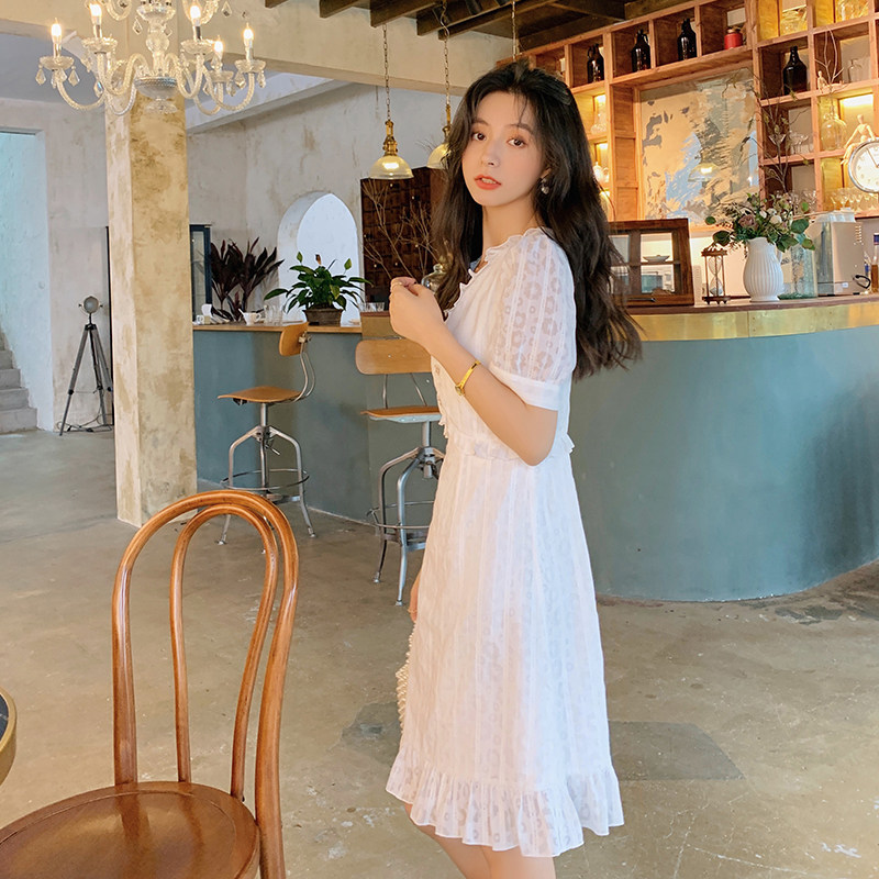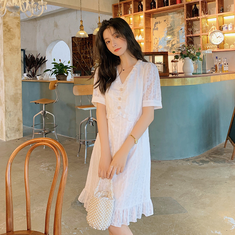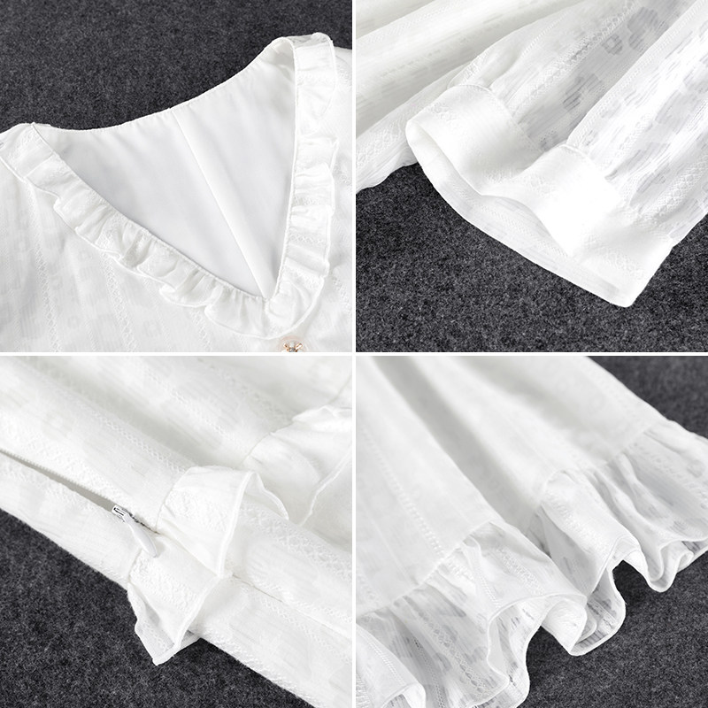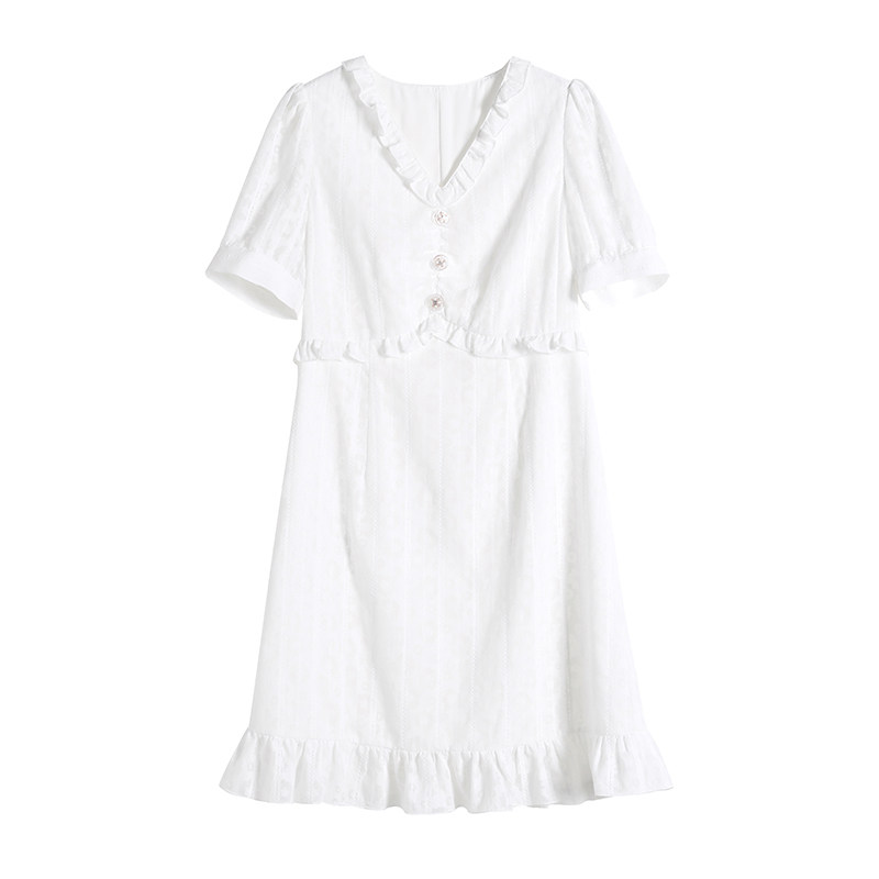 Blue Language Great Size Women Dress Fat Sister Mm Temperament V Collar Lotus Leaf Side Fairy Dress 2022 Summer Cashew Waist Display Slim Ocean Dress