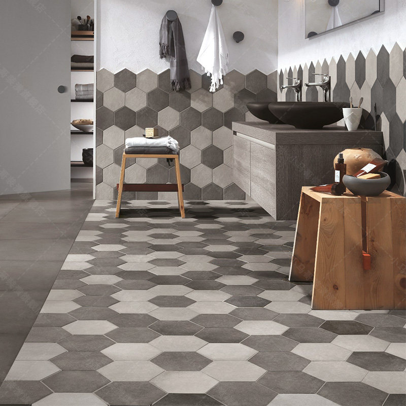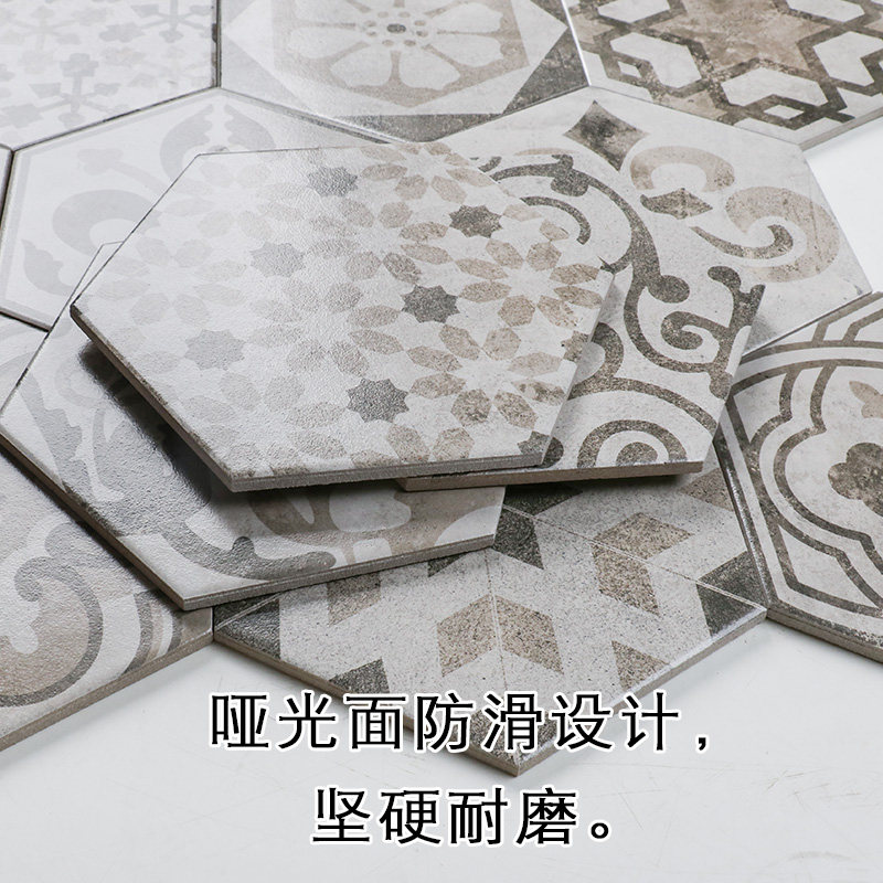 Industrial Wind Grey Cement Hexagon Brick Make-up Room Kitchen Flowers Brick Balcony Genguan Floor Tile Tooling Non-slip Tile