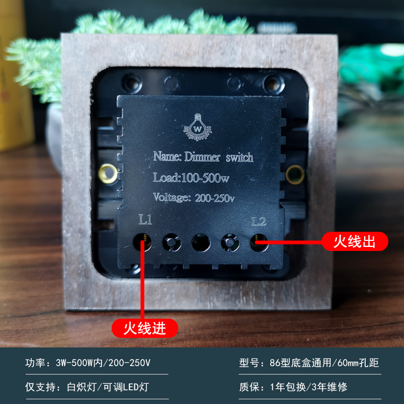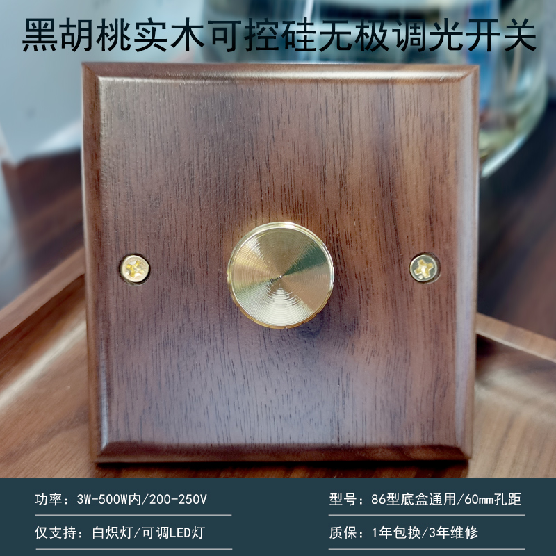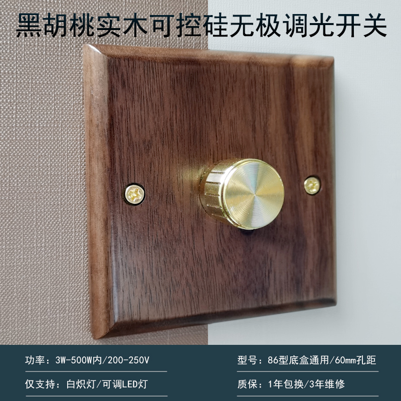 Type 86 concealed solid wood panel led dimmer switch knob light brightness regulator thyristor stepless dimming