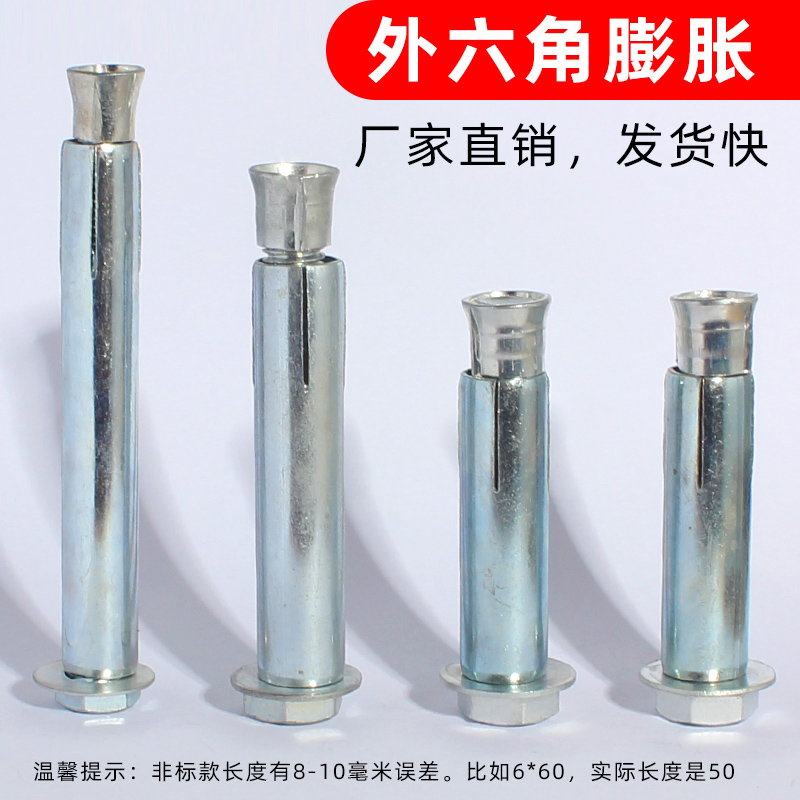 Galvanized inner expansion screw outer hexagonal expansion screw lengthened iron expansion tube inner Peng up M6M8M10M12 customization