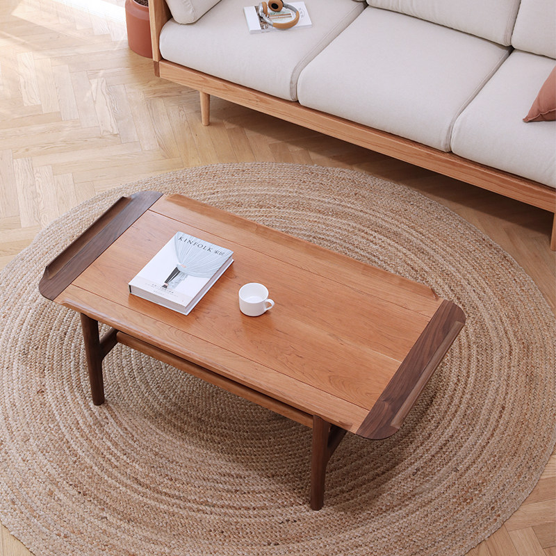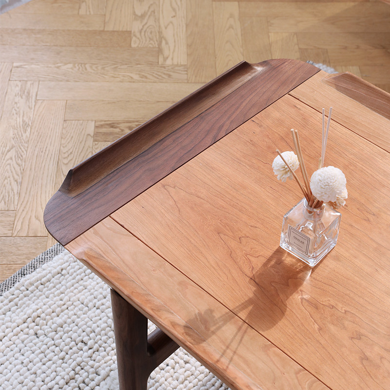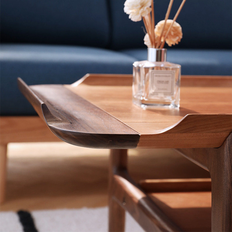 Custom Nordic Japanese black walnut cherry wood contrast sofa tea table TV cabinet combination living room small apartment