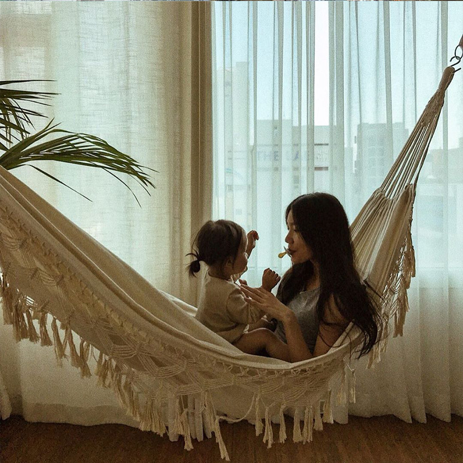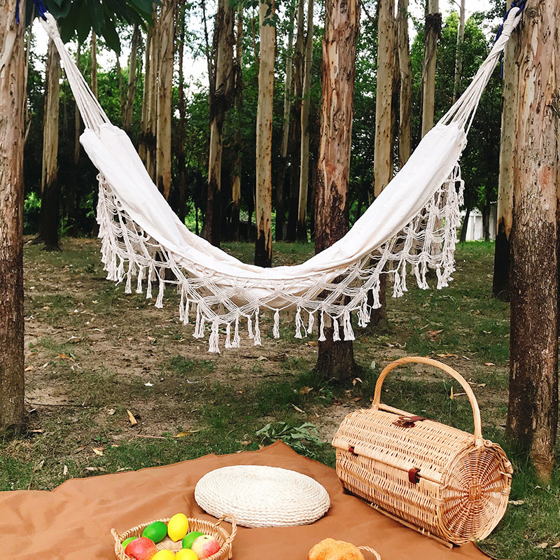 Net Red Ins Wind Picnic Hammock White Outdoor Camping Home Thickened Canvas Flutshaker swing Anti-side flap