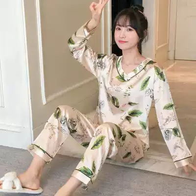 Ice silk pajamas women's summer silk short sleeves large size thin Korean version fresh cute spring and autumn home clothes two-piece suit