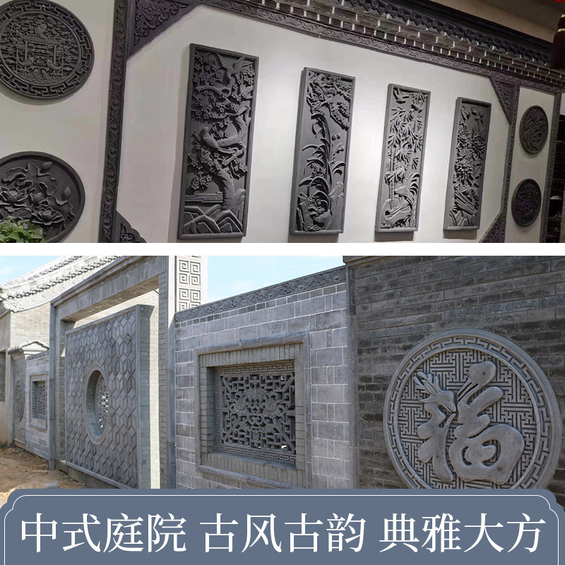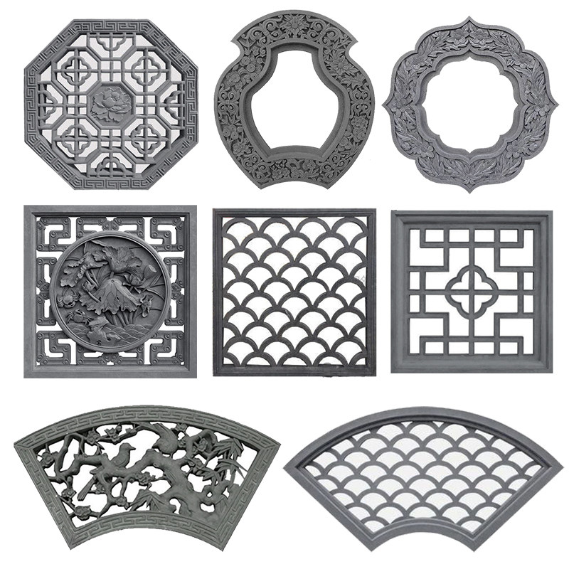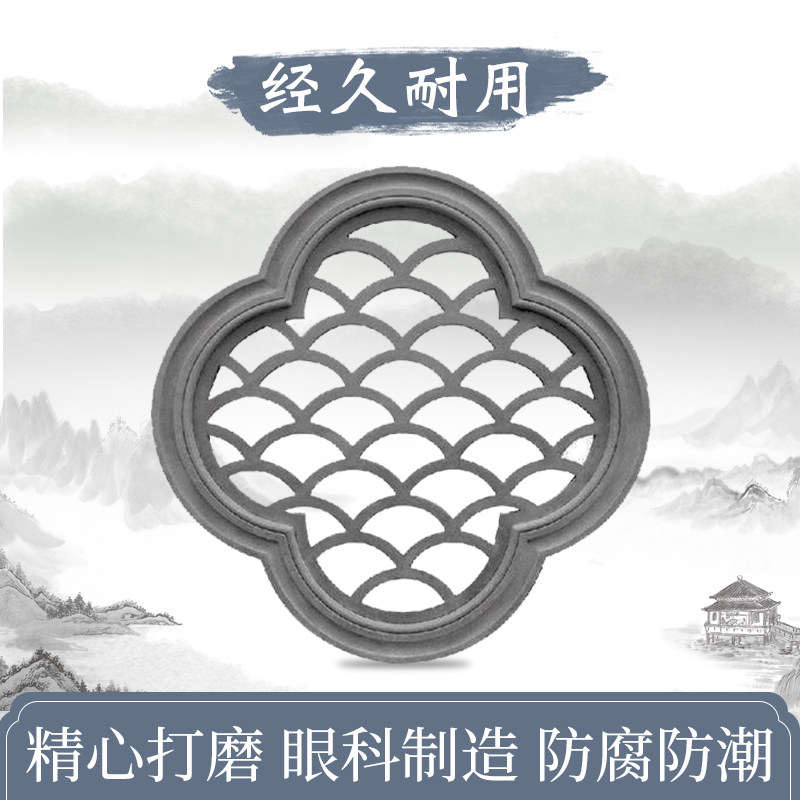 Imitation ancient brick carved hollow flower window sector Meran bamboo chamomile window flower Chinese style courtyard cement window flower walled decoration pendant-Taobao
