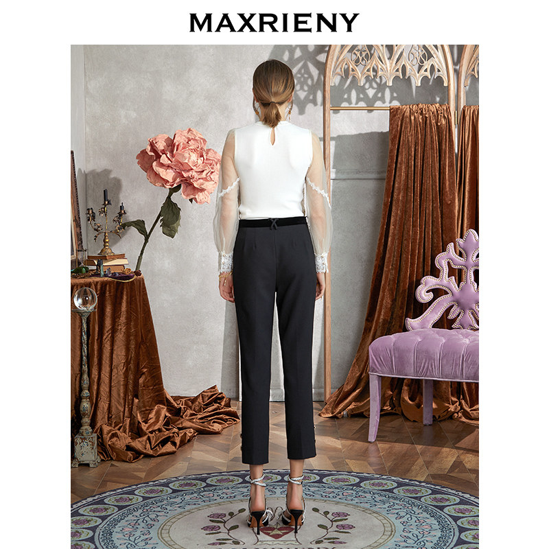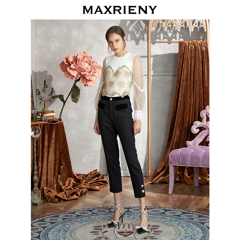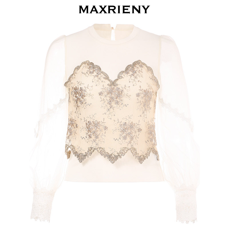 MAXRIENY Relief Lace Jacket Head Blouse Women Autumn's Lantern Sleeve Sweatshirt Temperament for a Palaeoknit Inner lap