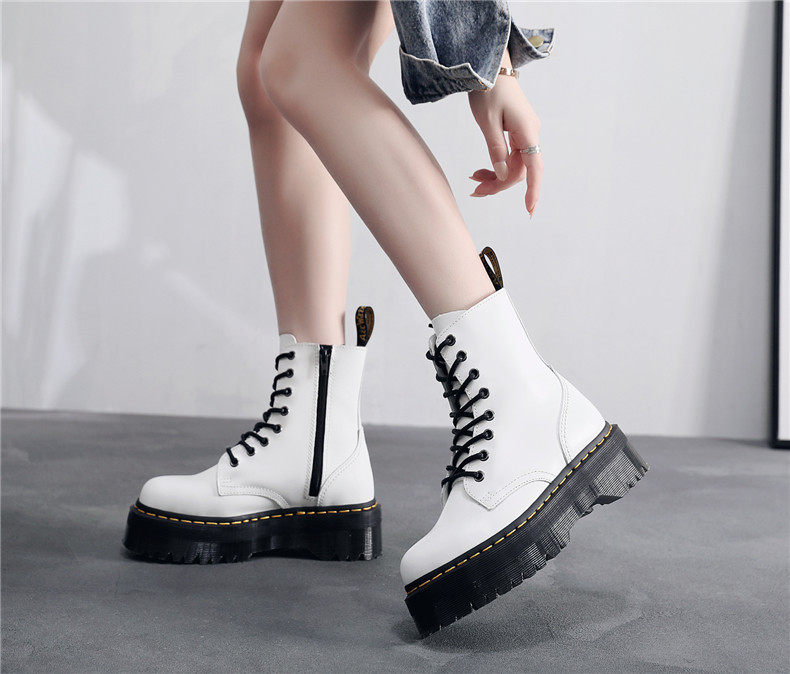 Thick bottom Martin boots woman 2022 thin section thick heel Inn wind 8 holes heightening genuine leather students 100 hitchhiking short boots