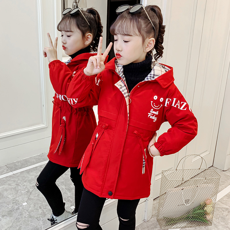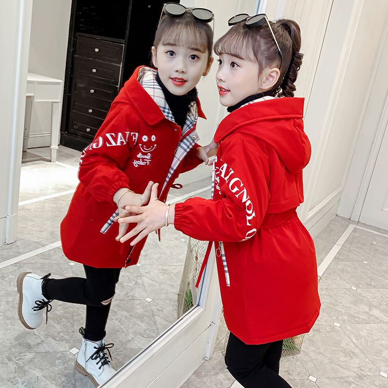 Girl Plus Suede Jacket Autumn Winter Paragraph 2021 New Foreign Pie Middle Long Version Children Thickened Wind Clothes CUHK Youngist Overcoming