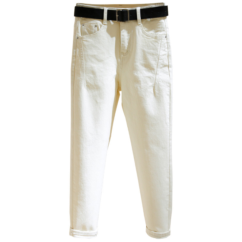 Thickened Display Slim Straight Drum Jeans Woman 2021 autumn winter new high waist plus velvety loose white Harlan old daddy pants