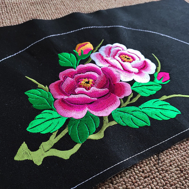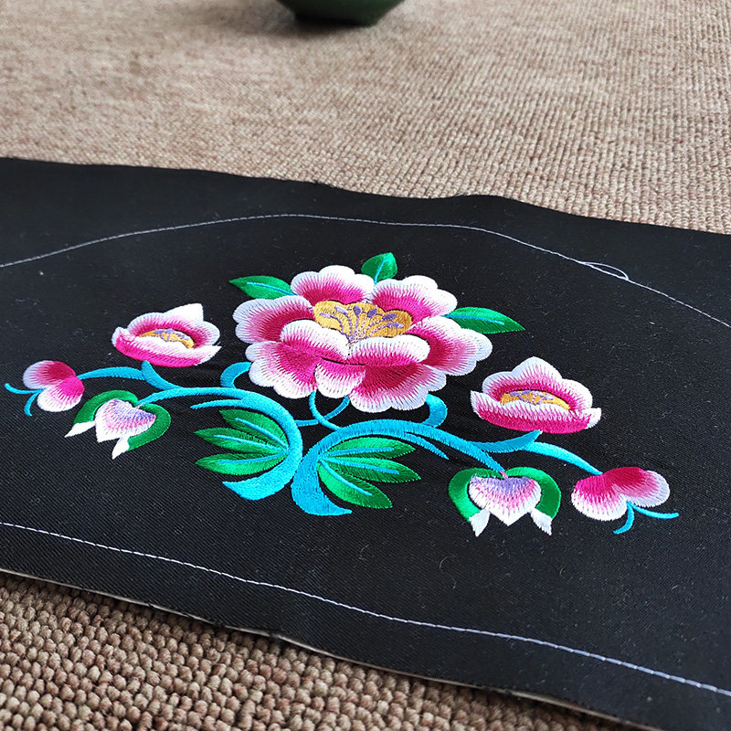 Finished machine embroidered bouquet with shoulder collar embroidered flat needle ethnic clothing accessories Black Bey clan waistcoat