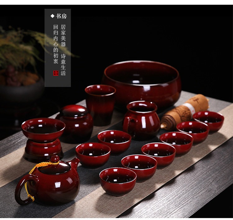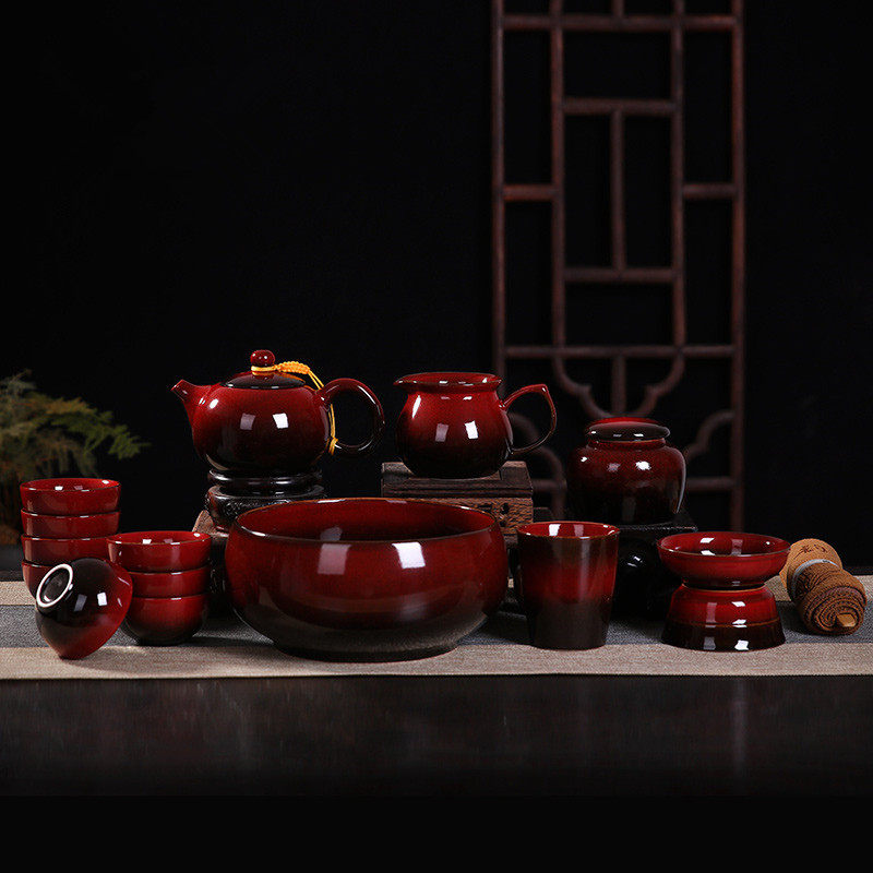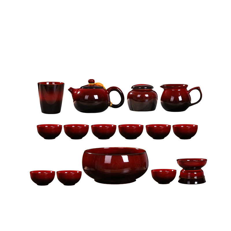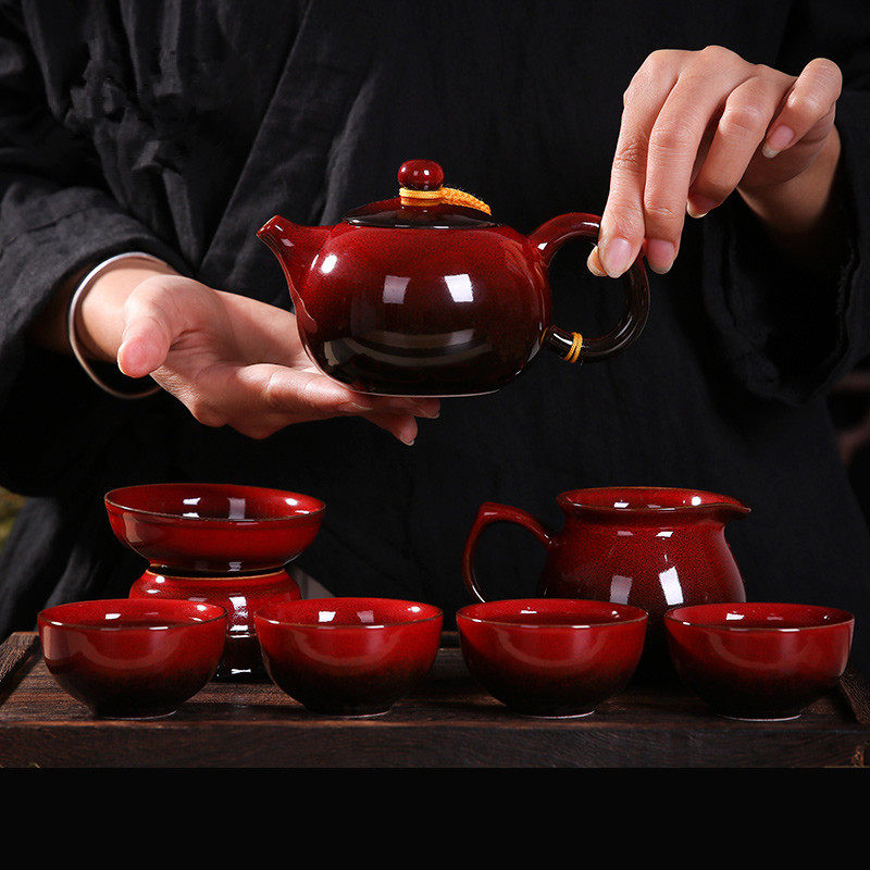 Kiln-turned Chinese red kung fu tea set set teapot tea cup pottery simple home office high-end wedding gift