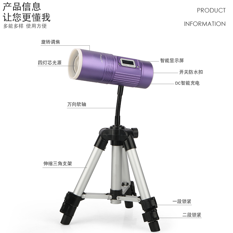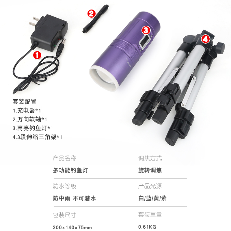 Bright light night fishing light fishing light Purple Light Bench Fishing Ultra Bright Xenon Fish Lamp Blue Light Flashlight Four Light Source Flashlight Light