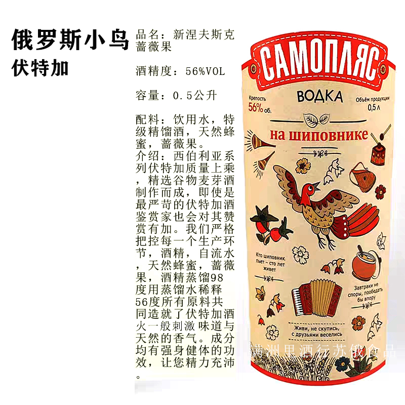 Russian Rosewood Taste Net Red Wine Imported Little Bird Vodka 56 Degrees Clear 500ml