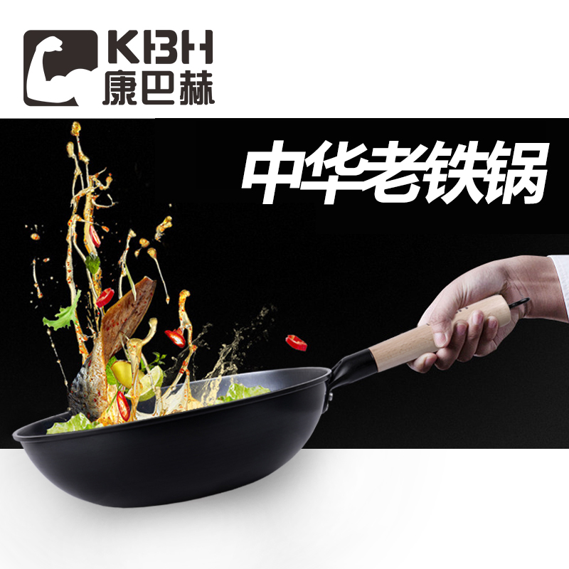 Conbach Iron Pan Without Coating Cast Iron Pan Flat Frying Pan Flat Frying Pan Household Induction Cookware Gas General China Old Iron Pan