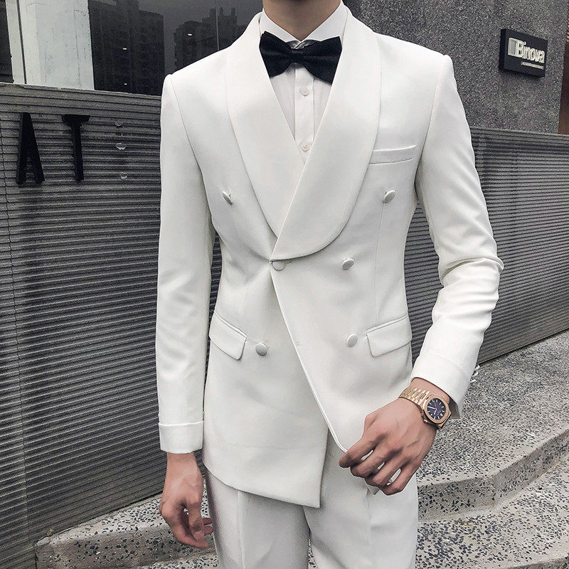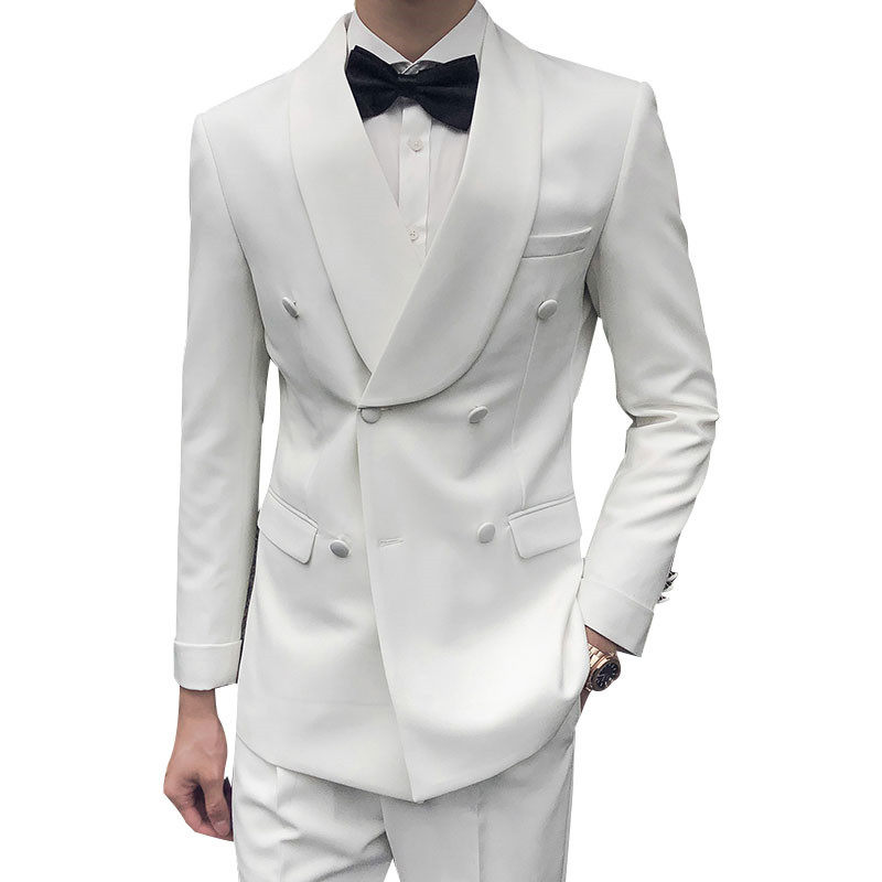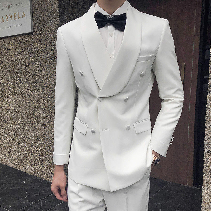Double breasted suit men's retro trend host banquet dress wedding suit groom handsome fashion trend