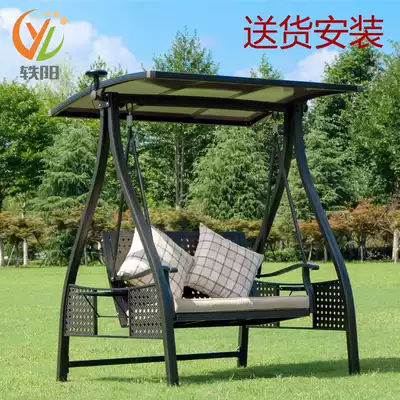 Yiyang outdoor aluminum alloy three-person swing rocking chair Courtyard garden hanging chair Solar light swing net red hanging basket
